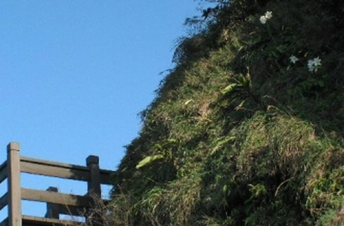 今年各地百合大多早開,但受天氣忽寒忽暖影響,盛花期相對延遲許多,賞花時間也拉長不少。綠島的野百合,就像臺灣本島的北海岸、東北角海岸相同,大多沿著環(huán)島公路旁山壁分布,大多是在人們很難攀爬到達(dá)的高聳峭壁上頭。