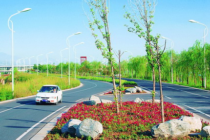 不僅如此,西安市在一環、二環、三環沿線及城市主干道和重點結點等地段,建立了綠色生態廊,栽植了大規格的國槐、法桐、皂角等鄉土樹;栽植了雪、油松、白皮松等常綠樹;栽植了桂花、銀杏、廣玉蘭等名貴樹;以及月季、女貞、紫薇等灌木。不僅突出植物的多樣性,配置的層次性,色彩的豐富性,還營造了三季花常開,四季景不同的景象。古城的綠多了,景美了,這是每一位市民最直觀的感受。綠滿西安,花映古城。自2004年,西安開始實施“大綠工程”以來,在城市周邊集中連片造林50多萬畝。一抹抹大綠庇佑著古城,讓西安更顯勃勃生機。