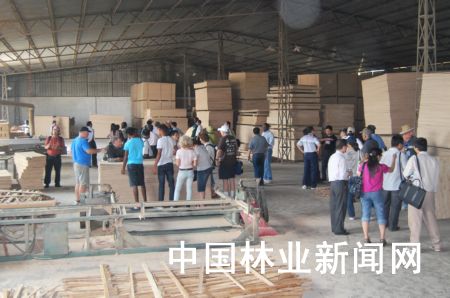中外專家考察海南省木麻黃加工廠。