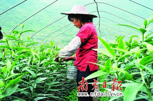 “別小看這樣一支鮮花,到廣州花店里一支可以賣到15元。”投資創辦百合花基地的徐總拿起一支剛割下的百合花告訴記者。他說,今年云南等地出現旱情,所以鮮花供給出現困難,而且云南鮮花一般是通過空運來廣州的,成本高、時間長,而他們出產的百合花正好彌補了這個缺點,從收割到上市,只需要2個小時。石湖的百合,運送到廣州芳村花卉市場后銷往全國各地,乃至出口。