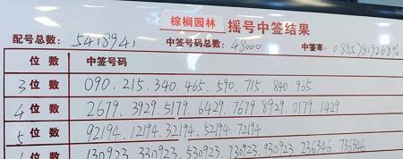 該帖顯示,“中簽號965、090、215、340、465、590、715、840”。之后,棕櫚園林搖出的“末'3'位”中簽號一般無二。從時間上看,中簽號被網民”公布“時,棕櫚園林根本尚未進行搖號抽簽。