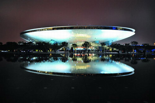 很多場館在設(shè)計時,就考慮了夜間效果,用燈光展示場館的另一面。作為世博園的核心區(qū)域,包括世博軸、中國館、世博中心、主題館和世博文化中心在內(nèi)的“一軸四館”,是夜景燈光設(shè)計要重點表現(xiàn)的對象。其中碟形的世博文化中心是這個黃金區(qū)域的最佳觀景點之一,夜晚的世博文化中心像一個閃著藍色星光的“珍珠蚌”,伏在黃浦江邊,與它南側(cè)的“中國紅”遙相呼應(yīng)。在這里,面向北或南,線條流暢的世博園縱軸就在你身邊,無論是延伸的全景,還是每個“花瓣”的細節(jié),燈光的變換都非常絢爛。世博文化中心旁的親水廣場很開闊,站在這里可以從各個角度拍攝世博文化中心,尤其是方便捕捉迷人夜色。