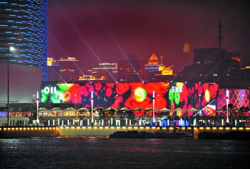 如果游客夜晚還徜徉在世博園浦西片區(qū),那么法國羅納·阿爾卑斯大區(qū)(簡稱羅阿大區(qū))別致的燈光秀表演就一定不能錯過。照明燈光漸次暗淡,城市廣場周圍的30多盞郁金香燈開始轉(zhuǎn)換成紅、黃、藍、紫等各種顏色,一個用燈光講述的故事通過投影展現(xiàn)在城市未來館的外墻上。燈光秀中還加入了許多中國元素,表達了設(shè)計者對上海世博會的祝福。據(jù)介紹,燈光秀每天晚上上演兩場,19時40分至20時20分,以及21時30分至22時10分。