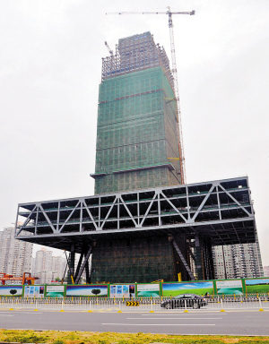 由世界著名建筑設計大師雷姆·庫哈斯設計的深圳證券交易所營運中心,離主塔樓245.8米的封頂高度僅有一步之遙,本月將全面封項,而被譽為“世界上最大空中花園”的“漂浮平臺”鋼結構施工已完成,這是記者3日從負責該項目鋼結構施工的中建鋼構有限公司獲悉的。