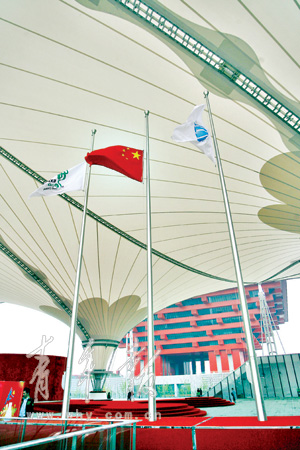 世博軸陽光谷 索膜里“開花”有原因(圖)