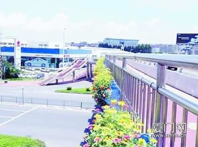 近日,廈門市公路局養護綠化中心對島內嘉禾路天虹商場等七座人行天橋安裝花盆進行垂直綠化。