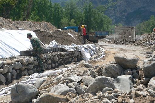 永定河流域山區河道生態修復治理工程施工現場。