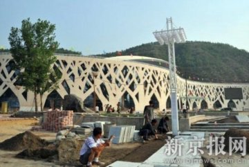 [背景]蒲子文化宮外觀造型為鋼筋混凝土結(jié)構(gòu),由23棵大樹圍繞而成,樹枝上點(diǎn)綴上鳥巢,頂部為“樹”造型,非常壯觀宏大,因而有人指出其像“鳥巢”。