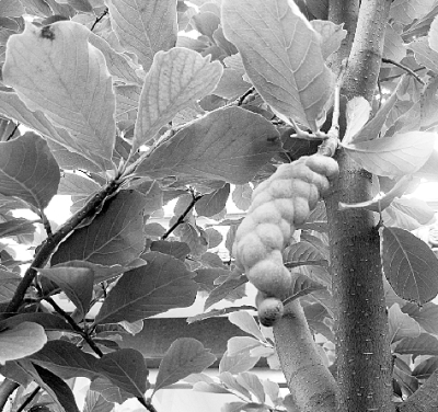 近日,滄州大化賓館門前的兩棵白玉蘭樹,竟然結出了果實。青綠色的果子約有10厘米長,果形千姿百態,有的如串串葡萄,有的呈麻花狀,有的則怪模怪樣。