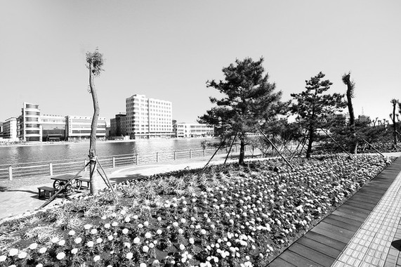 以“水碧”為重點,打造城市綠色水線。清水河城市綠色生態廊道在提升其兩岸綠化景觀水平的同時,重點對其上下游實施綠化和綜合治理。目前已種植各類樹木67萬株,形成了以大喬木為骨架,花果樹為點綴,花灌木、彩樹、常綠樹錯落分布的格局。