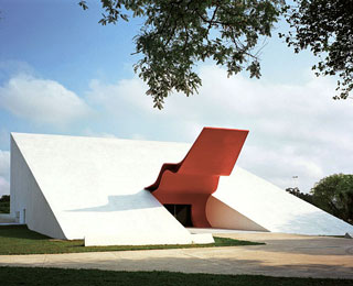 聯(lián)合國(guó)設(shè)計(jì)師OscarNiemeyer早在1951年變?yōu)闉槭ケA_的400周年慶構(gòu)思了AuditrioIbirapuera,但一直到2005年US$12mil資金兌現(xiàn)后才完成建造(幸好當(dāng)時(shí)享年101歲的Niemeyer還在世)。形狀奇異猶如門頂,又凸出一個(gè)“紅舌頭”,真是充分發(fā)揮了烏托邦式utopian的特色。場(chǎng)地還具有一個(gè)60英尺寬的后臺(tái)面板,經(jīng)常開放免費(fèi)戶外音樂會(huì)。