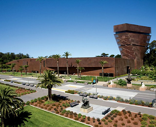 此物是由950,000榜的穿孔銅perforatedcopper所制成。金門公園中立著一座9層樓高棕色的塔,象征了瑪雅寺廟。窗戶也有綠色的點綴,襯托出周圍郁郁蔥蔥的氣息。