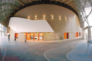 據(jù)建造方代表介紹,這里沒(méi)有安裝時(shí)下流行的中央空調(diào),而是用了分體空調(diào),僅此一項(xiàng)的造價(jià)就節(jié)省50萬(wàn)元,還為了賽后場(chǎng)館運(yùn)行減輕了成本負(fù)擔(dān)。
