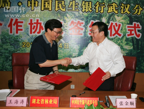 中國民生銀行武漢分行與湖北省林業局戰略合作協議簽約儀式。
