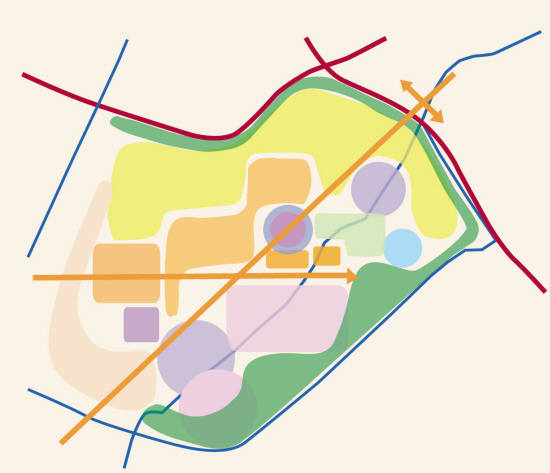 渾南新城按照“十字軸”型進(jìn)行規(guī)劃設(shè)計(jì),空間布局非常清晰,南北軸為功能軸,東西軸為生態(tài)景觀軸。在南北軸上,由北向南依次擺布公園、行政中心、市民廣場(chǎng)、科技文化中心(包括劇場(chǎng)、美術(shù)館、科技大廈、文化大廈、音樂(lè)廳、圖書(shū)館、科技館、檔案館)、會(huì)議中心等城市功能的設(shè)計(jì)。在東西軸上,設(shè)計(jì)為生態(tài)廊道,排列著各種主題的帶狀公園,突出了景觀、綠色的特點(diǎn)。