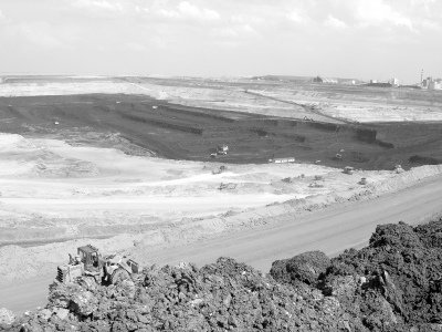記者在寶日希勒能源公司礦產中心露天煤礦看到,面積約20平方公里的煤礦多臺采掘機正在不停地作業,在煤礦周邊,草原沒有綠草如茵的景色,一條條黑色污染帶縱橫交錯。