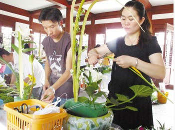 和綠化工種競賽同步舉行的是在蘇公島上進行的花卉競賽。30余名參賽選手每人做一件插花作品,為命題插花,選手可從“綠色家園”和“夏日”中任選一題目。