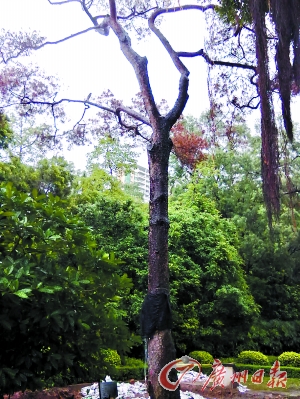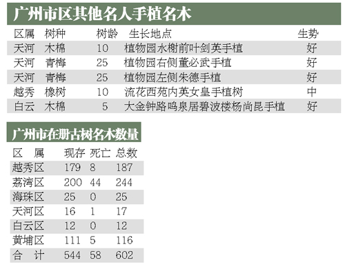 華南農業(yè)大學風景園林城市規(guī)劃系主任、教授李敏表示,廣州市內政府頒令保護的602株古樹名,近年來每年都有3~5株死亡,現(xiàn)存僅544株;而未頒令保護古樹的生死情況則無記載,至少約1000株,其生存條件受到更多的威脅。