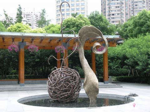 美國女雕塑家芭芭拉·愛德斯坦嘗試用雕塑來表現水。她的作品《生命之水》陳列在靜安雕塑公園長廊南的花架前廣場。《紅樓夢》主角曾把女人比作“用水做的”;而此刻,這位來自西方的女性,竟然能夠用至硬的“金”——銅與鐵來塑造至柔的水,以及水獨有的無處不在的張力,體現出“上善若水”的東方精神。