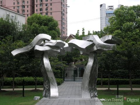 雕塑展中有不少作品大膽采用了新穎的材料與主題結合方式,完全跳出了人們的邏輯思維范圍,但視覺效果又是那么傳神入化。一座體態高大卻又輕盈通透的“風向車”正在靜安雕塑公園石門路主入口處轉動。這是世界級藝術大師法國雕塑家菲利普·伊其理以中國剪紙手法,把厚厚的鋼板“剪裁”出形態,再著黑色氟碳漆而成。它是一座可體現藝術“風向”的城市雕塑,同時還是一座“社會風向標”——指示出東方與西方、古老與現代融合的某種趨勢和途徑。