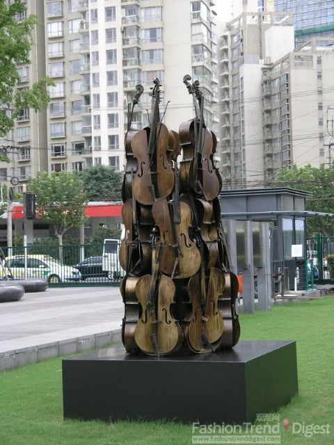 雕塑和音樂,繆斯九神中一對性格大異的孿生姐妹,雕塑是“靜止的音樂”,而音樂是“躍動的雕塑”。但是,被載入西方藝術史冊的藝術大師阿曼·皮埃爾·費爾南德茲的系列參展作品《男低音》、《音樂之神》、《音樂的力量》、《智慧之音》、《美麗時刻》等,打破了雕塑和音樂的“個性界限”,把這對姐妹合成了一體:你中有我、我中有你。他把四、五把提琴進行了不同方式的切割、分解、組合、集成,賦靜態雕塑以音樂的靈魂及功能。這一連串美妙的“音樂雕塑”,被綴在靜安雕塑公園“七彩花帶”作成的“五線譜”上,人們能夠從中“聽”同時也“看”到提琴奏出的各種主題旋律。