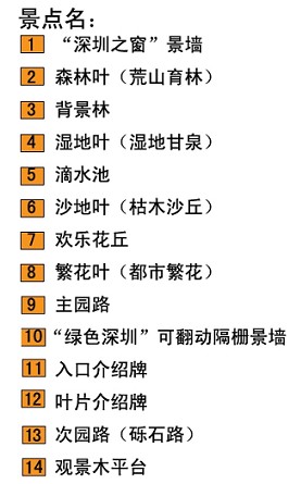 深圳展園位于綠博園楓湖區以南,占地面積2195平方米,為一狹長梯形。根據地形特點,本展園設計由一條飄逸的S形路網,將都市繁花、枯木沙丘、實地甘泉、荒山育林四個的主題景觀區域貫通,通過堆山理水的造園手法,將狹長的場地特色充分發揮,增強了景深效果,沿園路行進景觀豐富充盈,步移景異,幾個不同的綠色主題在園路的串接下相互聯系,啟承轉合,交相呼應,從不同的側面表達了綠色無處不在的主題,更將人們面臨的生態問題與解決這些問題的巧妙設計結合在一起,敲響警鐘的同時又指明了綠色生態化的發展方向,給人深刻的印象,發人深省,并讓人對綠色無處不在的未來充滿希望。深圳展園選用78種約16000株的喬灌木及植物,采用簡約和平衡的手法,遵循綠色生態、因地制宜的設計原則,巧妙地運用喬灌木及地被相互搭配,各種落葉和常綠樹木巧妙組合,陸生與濕生、水生植物的結合以及植物色相、季相的變化,鄉土樹種的運用使整個展園形成了一個色彩豐富、高低錯落、層次分明、四季有景的濃密的自然森林的感覺,綠化率達84%。展園運用“綠葉”作為載體,以現代的景觀藝術形態演繹“都市繁花、枯木沙丘、濕地甘泉、荒山育林”的景觀序列,展示都市繁華背后,過度開發導致環境惡化,氣候變暖,土地沙漠化日趨嚴重等問題,由此喚醒人們在低碳時代植綠愛綠的意識,尋找綠色的平衡點,保護濕地、培育森林,從而實現綠色無處不在、生態環境更加理想的美好愿景;與此同時,利用現代景觀構筑物--可翻轉的電動窗來宣傳深圳園林綠化取得的成就。本屆展園是一次生態技術的集成展示,設計中運用了透水磚路面、太陽能風電互補一體燈、節能LED照明、植物改良修復土壤技術、噴霧降溫保濕、輕質構筑物安裝技術、垂直綠化技術等生態技術。
