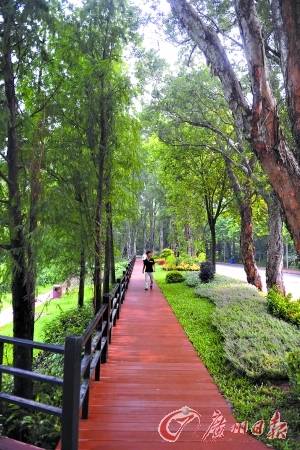 麓湖路人行道增加了1.5米寬的塑棧道。海國攝