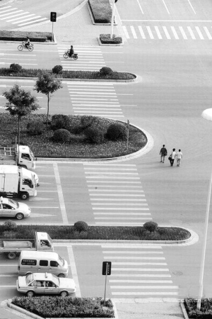 最“變態”斑馬線驚現河南 被3條綠化帶截斷(圖)