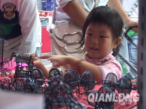 一位兒童對工美藝苑的商品產生興趣