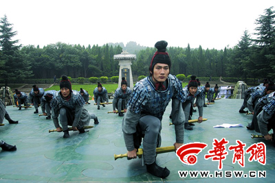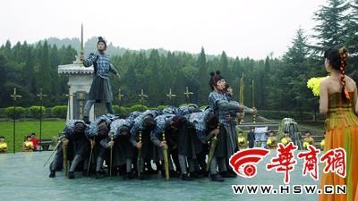 演員在秦始皇陵下表演廣場音樂歌舞劇《始皇陵暢想》(趙雄韜攝)