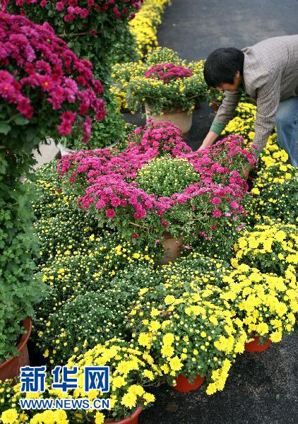 9月30日,工作人員在南京玄武湖公園內(nèi)布置花壇。新華社發(fā)(王新 攝)