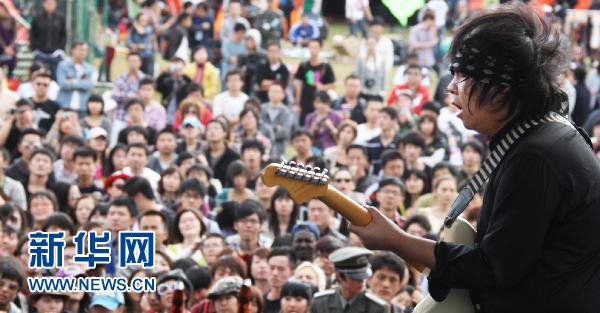 10月2日,演員在音樂節(jié)摩登舞臺盡情表演。當(dāng)日,為期3天的摩登天空音樂節(jié)在北京海淀公園開幕。音樂節(jié)設(shè)有摩登舞臺、天空舞臺、Badhead舞臺和電子舞臺,眾多知名樂隊(duì)和搖滾新軍將登臺亮相。新華社記者張燕輝攝