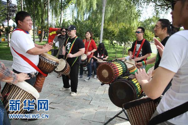 10月2日,北京一家非洲手鼓俱樂部成員在音樂節(jié)上。新華社記者張燕輝攝