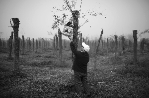 昨日,被砍的樹林里,一市民在遛鳥。本報記者 王嘉寧 攝