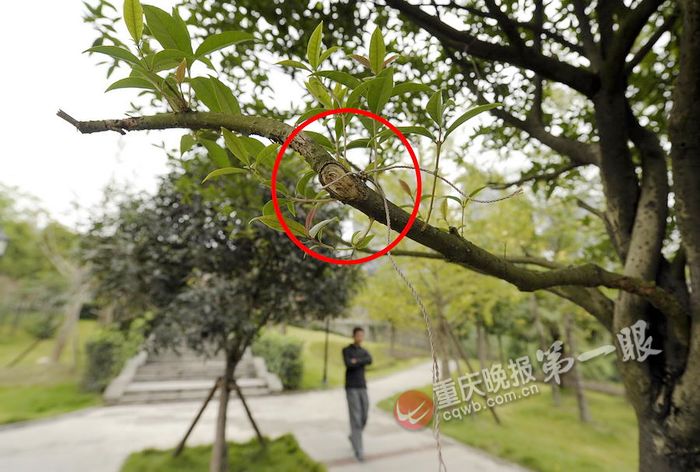 巴南老街公園,桂花樹枝被游人折斷