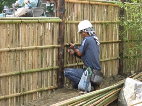 在大太陽底下揮汗工作,忙著編緊庭園旁的籬笆、敲打石砌造景,光是平常一天可完成的石砌,卻花了整整一禮拜敲敲打打,調整到最完美的狀態才終于完工,日籍造園設計師安藤龍二強調慢工出細活,從8月便來到臺灣參與花博,將要在花博寰宇庭園區中一塊約三百平方公尺的參展空間,打造出充滿禪風的日式庭園景觀,希望從11月起到花博的游客,都能欣賞他所做的藝術之美,而在這庭園造景中,更懷著安藤龍二對臺灣一份特殊的感情。