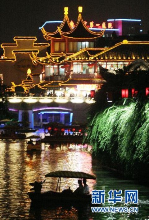 游人在南京夫子廟景區夜游秦淮河(2006年7月4日攝)。 新華社發