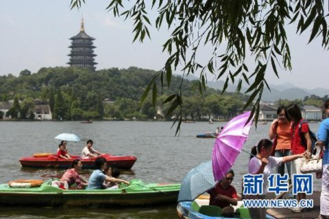 杭州市民在景色優美的西湖游覽(2003年5月31日攝)。新華社發