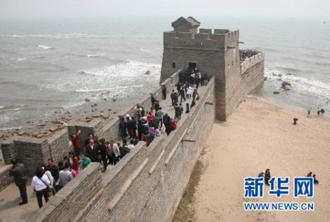 游客在秦皇島老龍頭景區游覽(2010年5月2日攝)。 新華社發