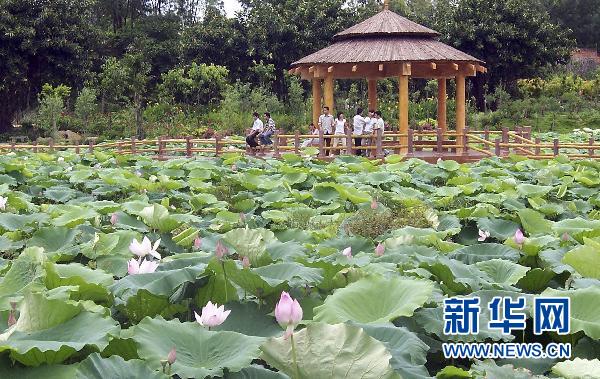 游客在廣東湛江市綠塘河濕地公園賞荷(2007年6月28日攝)。 新華社發