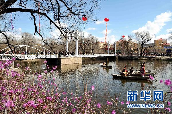 市民在內蒙古自治區呼倫貝爾扎蘭屯市內的吊橋公園參觀游覽(2010年5月12日攝)。新華社發