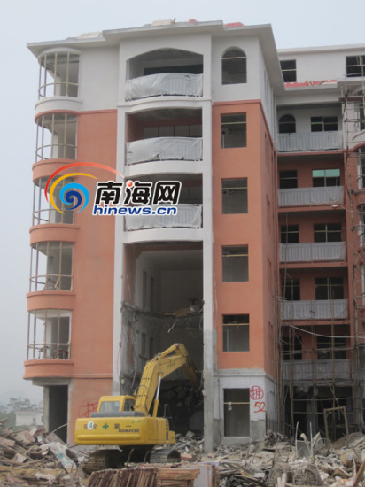 炮機正在拆除一棟裝修最貴的違建(南海網記者 劉嘉珮/攝)