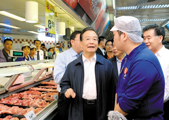 11月11日,溫家寶在廣州百佳超市考察商品供應和物價情況 新華社發