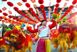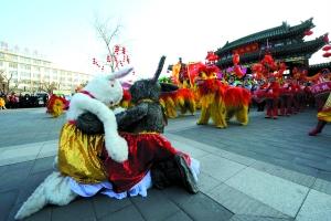 昨日,在地壇廟會開幕式上,國家“非遺”項目滄州舞獅表演吸引了不少觀眾。首席攝影記者 吳寧/攝