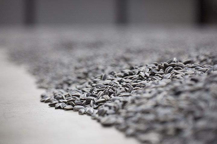 為什么選擇1億顆葵花籽?細小的葵花籽鋪在地方,踩踏時發出沙沙的聲音,感受腳底的變化,可以讓參觀者有冥想的空間。葵花籽來自向日葵,曾經是中國政治中、特別是文革期間的一個重要政治符號。艾未未還把這些葵花籽比作微博上的無數個體的細小聲音組成的思維與交流的汪洋大海,他本人是 Twitter 上的活躍人物。當然你還可以把這些葵花籽想像成為中國人,看上去都一模一樣,但其實每個都不相同。