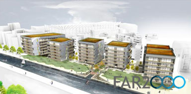 長長的彎曲草坪為昆蟲和鳥類提供了棲息地。一組由24個單元組成的住宅樓用鋁板包面。該項目計劃在明年4月開工,第一座建筑將在2011年年底建成。