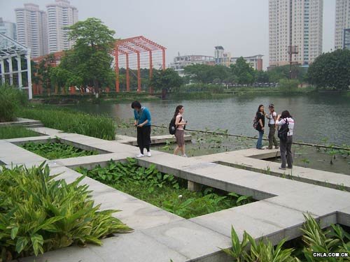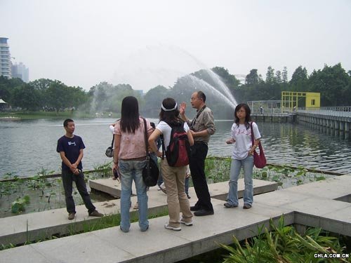 4月27日,伴隨著初夏難得的絲絲涼意,07級景觀同學在李迪華、孟彤老師帶領下,和正在景觀專業授課的法國里爾科技大學Virginie VERGNE教授一同考察了順德新城中心、中山歧江公園和番禺。 順德新城中心體現1990年代以來珠江三角城市建設的特點,雖然現在還在繼續建設,但已經建成的項目的使用、維護狀況都非常具有教育價值。VERGNE教授看到原來漂亮園林式草坪上沒有人管理,自然演替形成了具有非常豐富物種的鄉土植物群落,盛開著各種野花,她非常高興,告訴同學這才是“真正美的”——他們可以為其它生物提供食物,會在每個季節都不一樣,孩子們可以在這里學習到各種植物和動物的知識。同學們既有感于城市美化運動所帶來的鋪張浪費和“白宮”式的建筑造成的地方文化的缺失,也感嘆鄉土植物的頑強生命力和自然之美。 公園中親水的生態護岸設計和宜人的自然環境也激發了同學們的興趣。通過李迪華老師深入詳細的介紹,同學們了解到公園多樣性的生態駁岸設計不僅考慮到歧江公園不斷變化的水位,也利用了大量鄉土植物創造了優美的生態環境,梯田式的種植臺、臨水棧橋和水際植物群落使游客欣賞到自然生態和野生植物之美。VERGNE老師則對比中法兩國不同的駁岸處理方式以及植物配置,給課程做了生動的補充。 另一個吸引同學和游客的景點是公園內的舊鐵軌。鐵軌中間鋪滿了白色的卵石,兩邊則是當地野生的茅草。大家興致勃勃地踩上鐵軌,考驗自己的平衡感。仔細思考后我們發現,設計師正是將鐵軌設計成了沒有危險的游戲場所,使人們關于冒險與挑戰的人性之真得以袒露。 最后,師生們來到了廣州土人景觀顧問有限公司,龐偉先生熱情接待了我們,介紹了歧江公園設計過程中的種種困難和挑戰,他幽默中帶著睿智的話語讓同學們受益匪淺。隨后設計師張健向我們介紹了昆明中美二戰友誼公園等項目。 為期一天的實習既讓同學們學會如何把課程的所學知識應用于實際,也讓同學們通過親身觀察和體驗對俞孔堅老師倡導的“足下文化,野草之美,人性之真”有了更深刻的理解。
