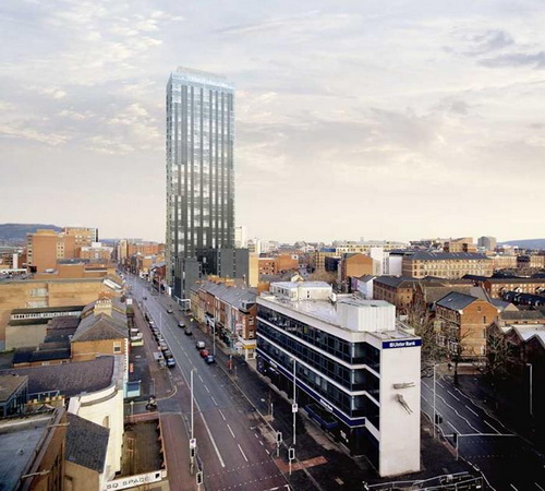圖中的高樓為“北極光大廈” 這項政策的細則還沒有宣布。但北愛爾蘭環境部長埃德溫-普茲對媒體說:“我們正在考慮在哪兒建造高樓合適的原則。”他說,貝爾法斯特落后于建造摩天樓的時代。 埃德溫-普茲說:“如果我們繼續發展我們的經濟,我們必須增加人口,而高層建筑能夠容納更多的居民和提高土地的利用率。” 這個更多地建造摩天樓的決策是在HKR建筑師事務所設計“北極光大廈”(Aurora)一年以后。這幢計劃建設的37層的住宅大樓被拒絕發給規劃許可證。