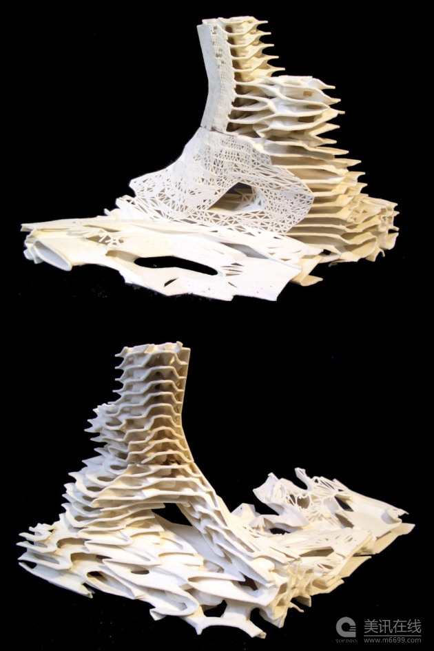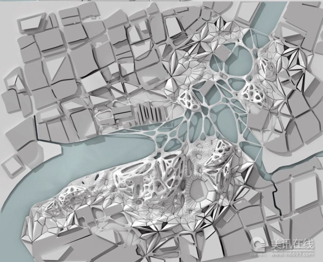 所有的古城,具有歷史意義的城市和當(dāng)代的城市都隱藏了空間順序,幾何結(jié)構(gòu)和分配等級,這些都與再分手法有著聯(lián)系。細(xì)胞型的“網(wǎng)狀”城市所提出的工作和研究已被直接用于世界擴(kuò)張速度最快和密集度的城市——上海加快城市化模式的設(shè)計(jì)和研究之中。人們對于智能和相互關(guān)聯(lián)的城市組織中的新定義和形式進(jìn)行了研究,以尋求出重新定義現(xiàn)有城市化的潛力,并建造相互統(tǒng)一且不同的建筑系統(tǒng)和城市空間,同時(shí)制定出未來城市發(fā)展和進(jìn)化的方案。 細(xì)胞型的“網(wǎng)狀”結(jié)構(gòu)將城市用一種全球和地方規(guī)則,法典和政策的數(shù)學(xué)性表達(dá),不斷重塑從部分到整體的空間關(guān)系。用計(jì)算機(jī)和已有的能力來管理高標(biāo)準(zhǔn)的復(fù)雜性,這種方法展現(xiàn)了城市和建筑空間,結(jié)構(gòu),系統(tǒng)以及各組成部分的一種微妙的調(diào)節(jié),同時(shí)用關(guān)聯(lián)模型和算法程序所產(chǎn)生的迭代圖形空間的新形式來試驗(yàn)。 這有著雙重的效果:首先它是2010年世博會(huì)的一個(gè)樣本城市世博會(huì),其次在2010年后它對于這一區(qū)域的遺產(chǎn)可能有的未來的規(guī)劃。城市細(xì)胞網(wǎng)絡(luò)被用于為2010年世博會(huì)配置一種厚的,深及“多樣化”的城市階層。空間細(xì)胞和相互聯(lián)系在區(qū)域中橫向的進(jìn)行了擴(kuò)展并且以一系列新的迭代樓類型的方式豎直的發(fā)展,這些類型在多樣性的規(guī)模、密度和高度中定義了一種相互粘連但不同的分段組織。從直線部分到逐漸的空間過渡,配置中所獲得的增長和擴(kuò)展的特別規(guī)則和形成曲線空間和結(jié)構(gòu)的一種分段式的數(shù)學(xué)方法同各種地域規(guī)模系統(tǒng)進(jìn)行編碼。曲線的表面模塊被控制在被約束的空間之中,并且在各種規(guī)模上進(jìn)行連續(xù)的編排以形成集合的建筑結(jié)構(gòu),空間分隔,多孔的外立面系統(tǒng),獲得來自于簡單規(guī)則中的高規(guī)則的組織復(fù)雜性。 細(xì)胞型“網(wǎng)絡(luò)”城市2008年1月25日在AA School of Architecture Candidacy Jury上進(jìn)行了展示,并獲得了建筑設(shè)計(jì)和城市化方面的March Degree獎(jiǎng)項(xiàng)。這一工程的團(tuán)隊(duì)成員有:Jinqi Huang,Junkai Jian和Lina Ahmad。