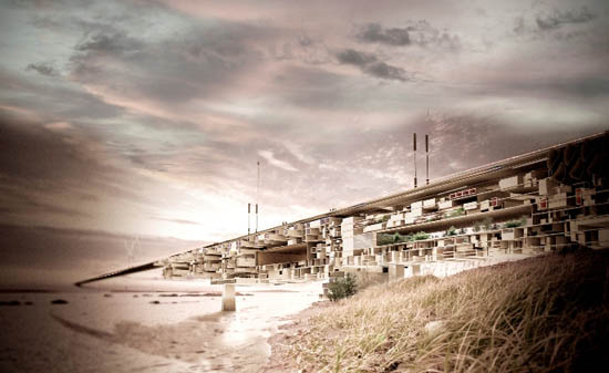 海洋城市– Arup Biomimetics 一種新的水下城市,從氣候變遷的發生,導致對仿生材料與操作日漸增加的興趣之下分裂衍生而來。由于逐漸消失的土地價值飆升,澳大利亞人民從地面移民至海洋,為發展新型都市景觀提供了新的契機。其中包含了能源生產者,部分工業以及其他永續農業和食物制造業,專業化分工的小有機群,聚集而成一個功能性全面的整體。